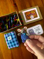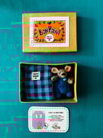 Boîte cartonnée de 10x7 cm illustrée et décorée de tissu contenant :
