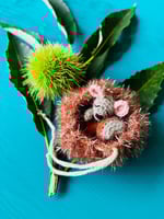 Accompagné d'une bogue de 8 cm et d'une petite châtaigne en alpaga de 2 cm.