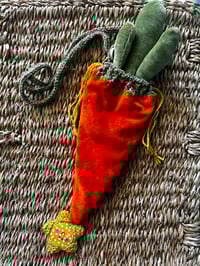Un pochon en forme de carotte magique d’environ 38 cm de haut.